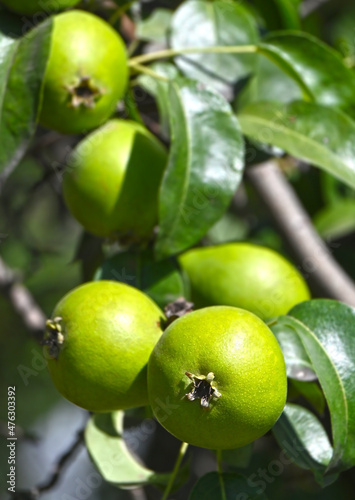 Green pear on the branch