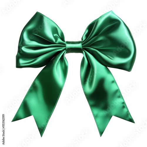 Green ribbon bow isolated on transparent background Generative Ai.