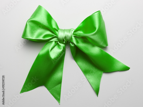 Green Ribbon Bow with Real Shadow isolated on White Background