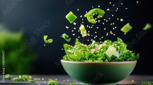 Green Salad with Sesame Seeds in a Bowl