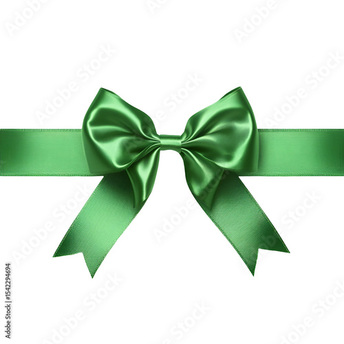 Green satin ribbon bow on black background elegant gift wrapping