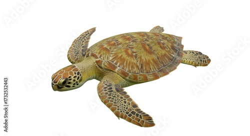 Green sea turtle PNG isolated on transparent background, marine reptile with patterned shell for wildlife and conservation projects