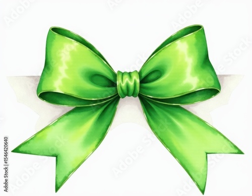 Green Watercolor Bow Clipart, Shiny Ribbon, Gift Decoration, Festive Bow