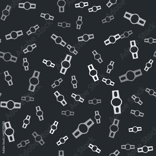 Grey Boxing belt icon isolated seamless pattern on black background. Belt boxing sport championship winner fight award. Vector.
