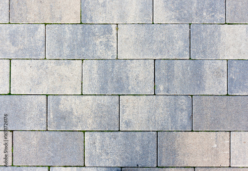 Grey brick wall background close up. Gray stone tile block background with horizontal texture of gray brick. Gray brick surface.