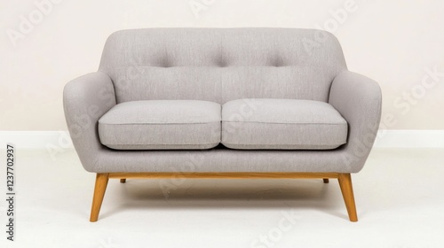Grey Fabric Two Seater Sofa Mid Century Modern Style