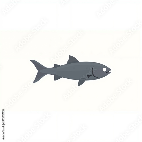 Grey fish illustrated in minimal style on white background