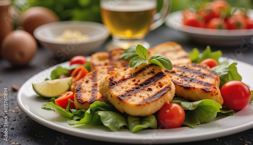 Grilled Halloumi on Fresh Salad with Cherry Tomatoes, Culinary Delight