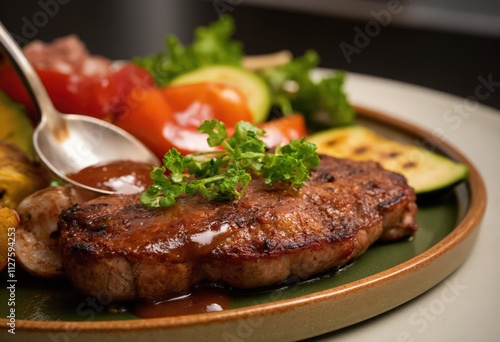 grilled steak with vegetables