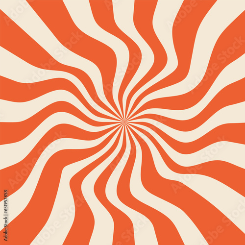 Groovy retro swirl burst, summer and carnival background. Vector backgrounds in trendy retro trippy style. Hippie 60s, 70s style