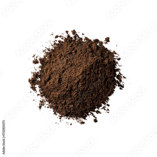 Ground Coffee Pile, Top View, Dark Background