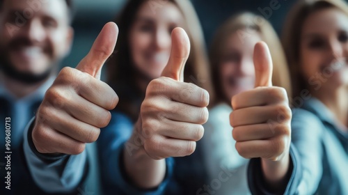 Group of different business people giving thumbs up. Dream team of smiling friends, colleagues or business partners doing like gesture, hands closeup. Satisfaction, successful teamwork concept.