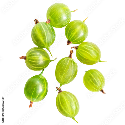 Group of green Gooseberry. Fresh berries isolated on white background. Flat lay. Top view