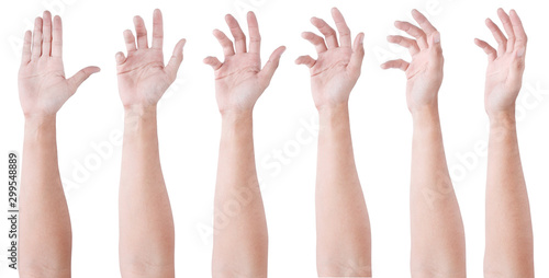 GROUP of Male asian hand gestures isolated over the white background. Soft Grab Action.