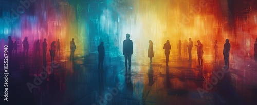 Group of People Standing in Rainbow Colored Room