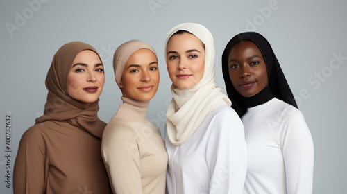 Group portrait of women of different ages and ethnic backgrounds, smiling and embracing each other, symbolizing diversity and unity.