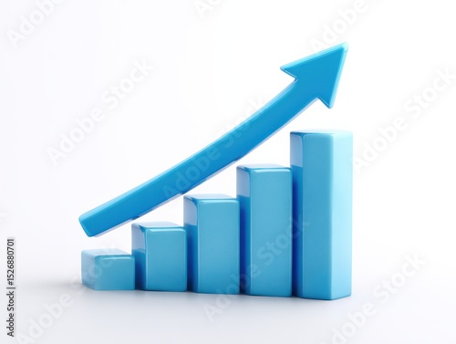 Growth chart with upward trending arrow on white backdrop. Business success, rising market, profit gains, increase concept