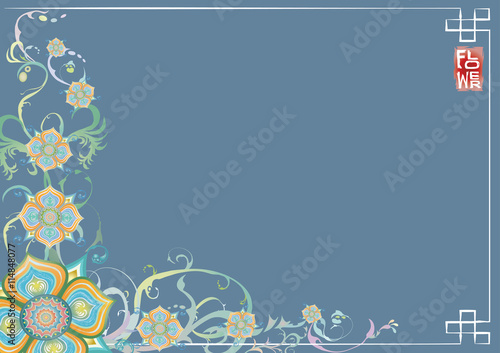 Grunge flowers abstract with blue background. Colorful vintage flowers. Abstract flowers design in asian style.