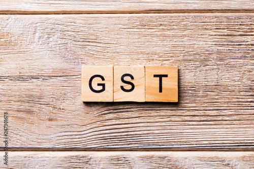 GST word written on wood block. GST text on wooden table for your desing, concept