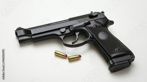 Gun and Bullet on White Surface