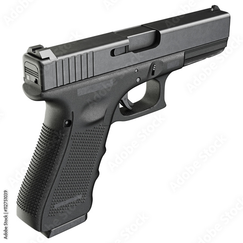 Gun metallic police, military, black on white background isolated. 3D graphic
