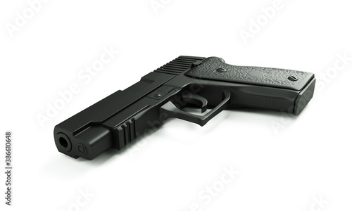 Gun metallic police, military, black on white background isolated, front view. 3D render