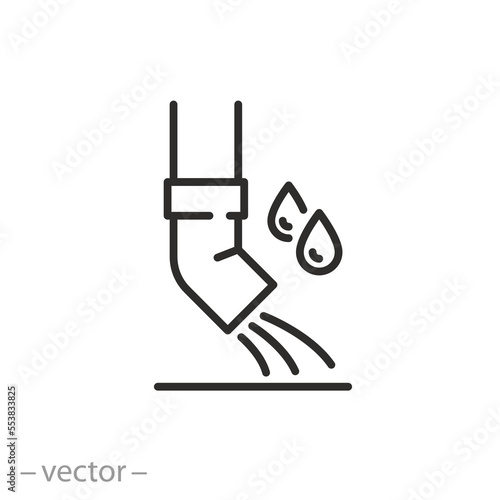 gutter icon, drain water of roof, rain pipe, thin line symbol on white background - editable stroke vector illustration