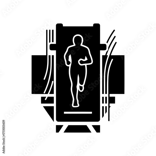 Gym treadmill vector art of silhouette of a man running on a treadmill