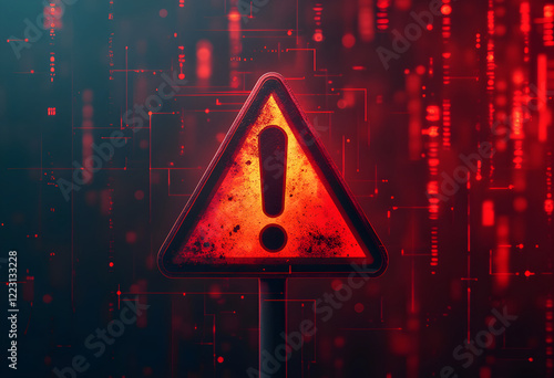 Hacking Concept. Attention warning attacker alert sign with exclamation mark on dark red background.Security protection Concept. vector illustration.