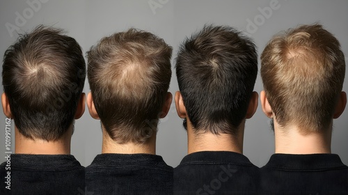 Hair restoration monthly timeline, highlighting before-and-after comparisons that reveal the gradual thickening and regrowth of hair with consistent treatment