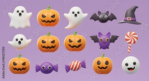 Halloween Cartoon Illustration with Pumpkins, Ghosts and Bats