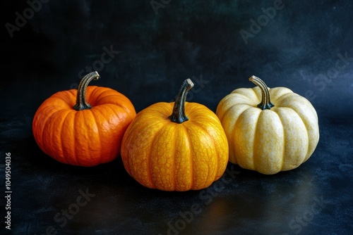 halloween pumpkin on dark background on holiday, three different pumpkin backgrounds wallpaper for design