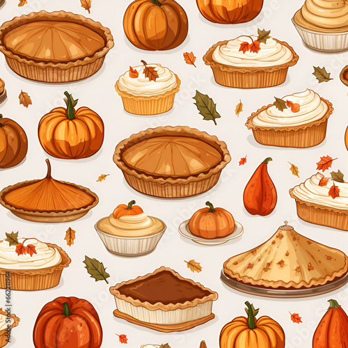 halloween seamless pattern with pumpkins,food,coffee,cream,icon,illustration,candy,bakery,seamless,Ai generated