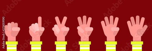 Hand counting Zero to Five in the box. Flat Cartoon Hands Concept. Vector Design Illustration.