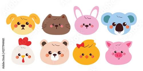hand drawing cartoon animal head sticker set. cute animal drawing, doodle set