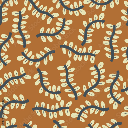 Hand drawn abstractpattern with brunch. Seamless pattern with fall leaves.