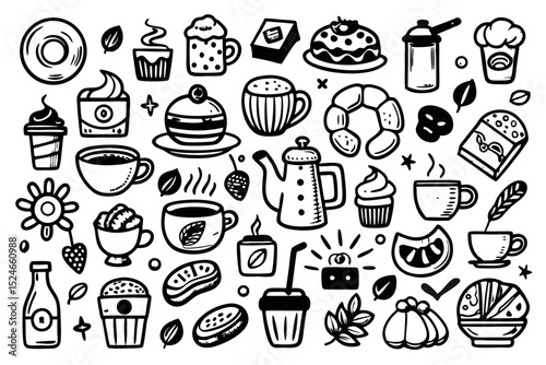 Hand drawn coffee doodle sketch set isolated on transparent background