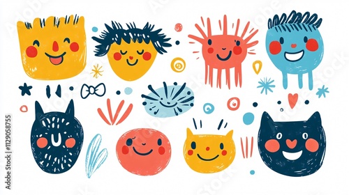 Hand Drawn Doodle Elements: Emotional Faces and Cute Decorations
