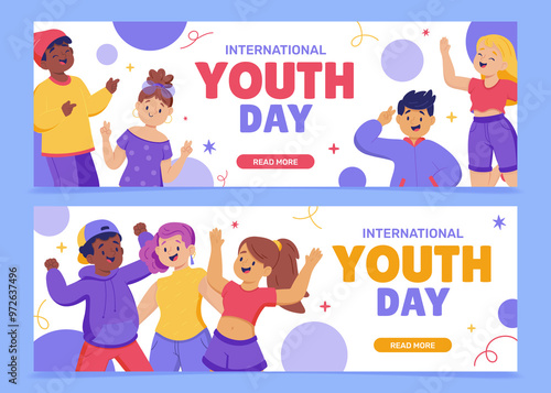 Hand drawn flat International Youth day horizontal banner template set