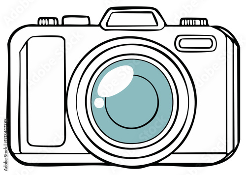 Hand drawn modern camera icon with blue lens for photography and technology themes