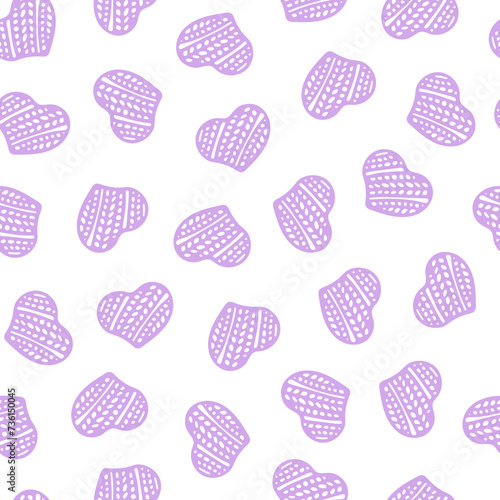 Hand Drawn Seamless Patterns with Hearts in Doodle Style.