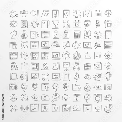 hand drawn seo and web marketing concept icons