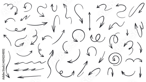 Hand Drawn Set of Arrow Elements Isolated on White Background