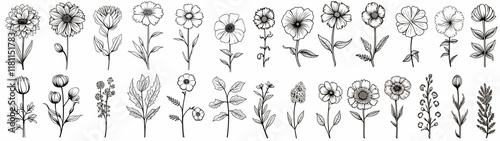 Hand drawn simple flower outline illustration