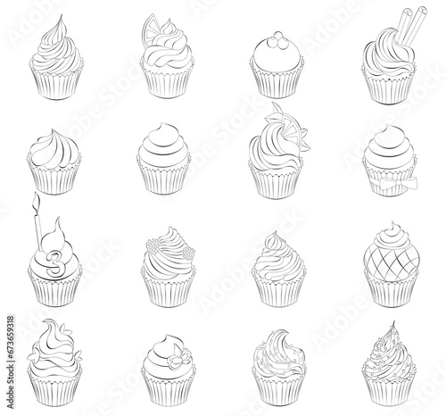 Hand Drawn Sketch set of Cupcakes Vector Illustration