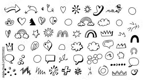 Hand drawn vector alphabet set illustration with cloud sign and sun sketch pattern