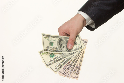 Hand handing over money isolated on white background