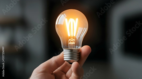 Hand Holding a Glowing Lightbulb Against a Dark Background