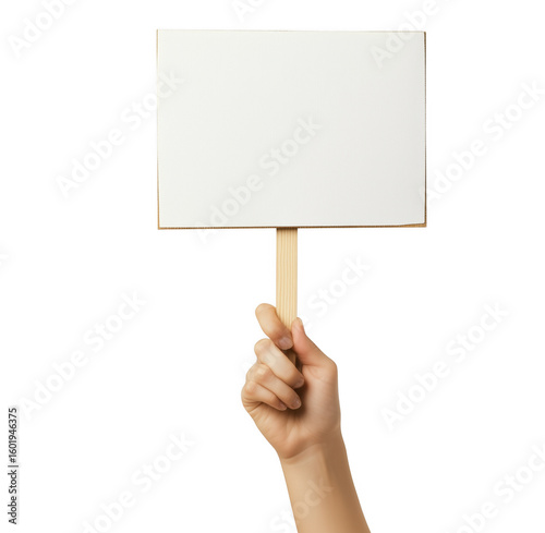 Hand holding blank sign against transparent background suitable for message display and advertising