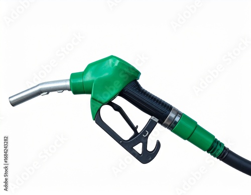 Hand holding Fuel nozzle with hose isolated on white background